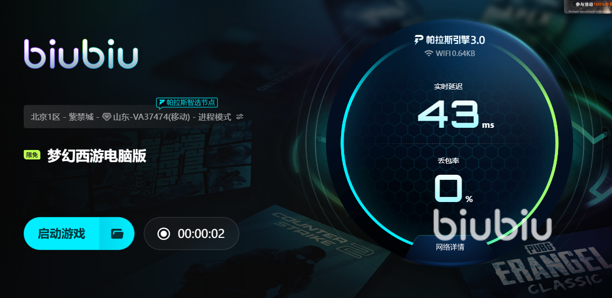 《梦幻西游》在挂机时需要实时向服务器发送角色状态,比如自动战斗的技能释放、摆摊物品的价格变动,哪怕是离线挂机,也得保持微弱的数据交互。如果传输中出现波动,服务器就可能判定角色离线,尤其是在深夜或活动高峰期,数据拥堵更容易引发掉线。在这里小编推荐一款biubiu加速器,新用户注册能获得24小时免费时长,【biubiu不卡顿】还能再兑换72小时。