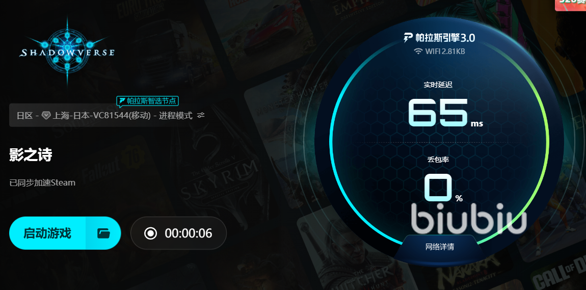 biubiu能解决闪退,核心在于它对卡牌游戏的优化逻辑。biubiu与冠军选手Aixleft达成了合作,并引入了帕拉斯引擎3.0,这为玩家带来了更专业、更稳定的网络优化效果,能实时避开信号弱的区域,就像给数据开了条高速路。有玩家反馈,用后不仅闪退少了,连加载新卡牌特效的速度都快了,再也不用看着转圈的加载图标着急。