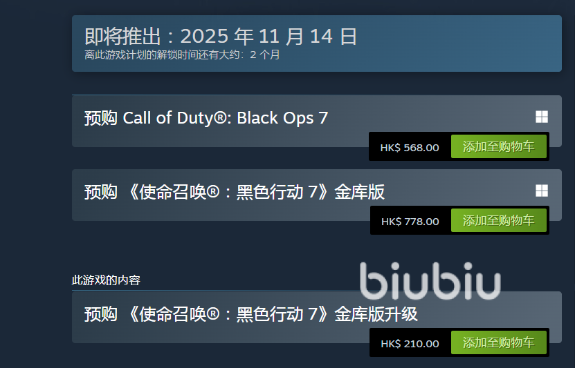 官方对于国内玩家还是比较友好的,这一版本是提供了中文字幕,配音等等,同时在上线steam的时候也是有中文名版本。所以不管是玩家用中文,还是英文名称《Call of Duty®: Black Ops 7》查找,都可以看到商店页面。