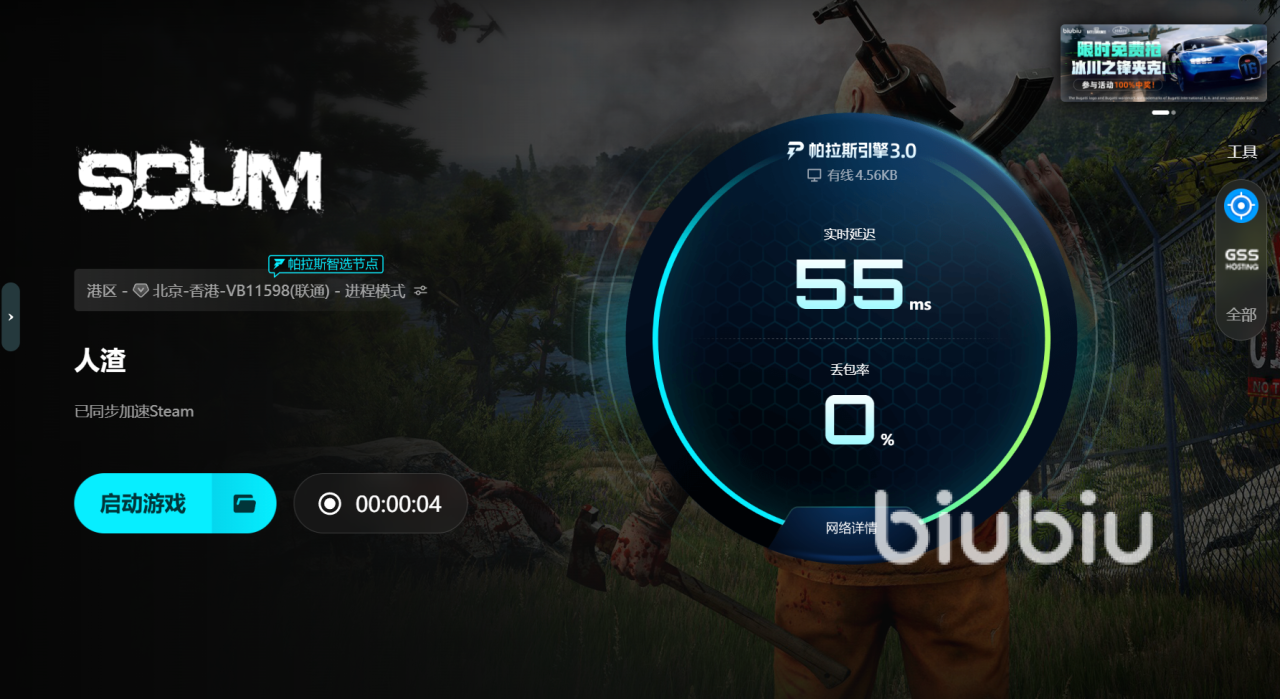 很多玩家认为人渣的闪退卡顿是游戏本身的BUG或硬件性能不够强大,但实际上,网络连接质量和数据传输的稳定性往往是导致掉线和卡顿的主要原因。尤其是在进行多人合作或PVP时,大量的数据交互对网络的要求非常高。biubiu加速器通过智能路由选择和多线并行技术,帮助玩家避免因网络拥堵或延迟过高而带来的卡顿问题。在经过实测后,小编发现,使用biubiu加速器后,原本的140ms延迟稳定降低到了55ms,游戏体验大大提升,操作响应更为灵敏,卡顿和掉线的情况几乎完全消失。