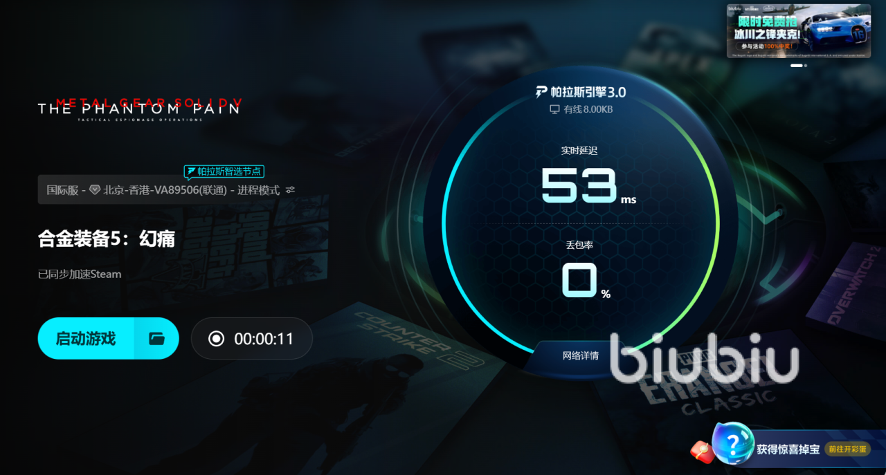 如果你正在为合金装备幻痛黑屏的问题苦恼,不妨在启动前打开biubiu加速器。它能帮助你稳定网络连接,减少加载卡死,让你快速投入潜入与战斗,把时间用在探索和剧情体验上,而不是一次次被黑屏困扰的挫败感中。