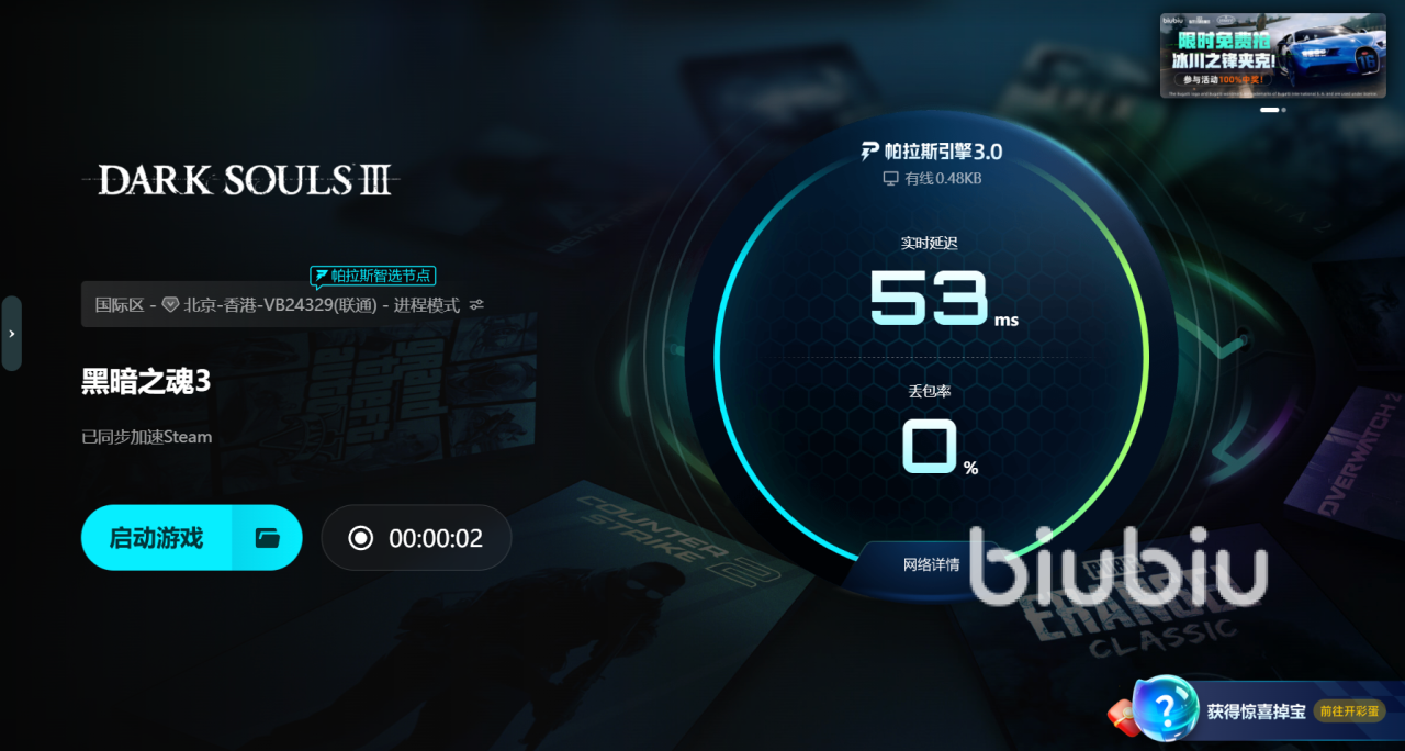 如果你也正在为黑魂3白屏、黑屏而烦恼,不妨在启动游戏前打开biubiu加速器。它能帮助你减少加载异常,避免黑屏卡死,让你真正把时间用在探索世界与挑战强敌上,而不是一次次被卡在启动界面的挫败感中。