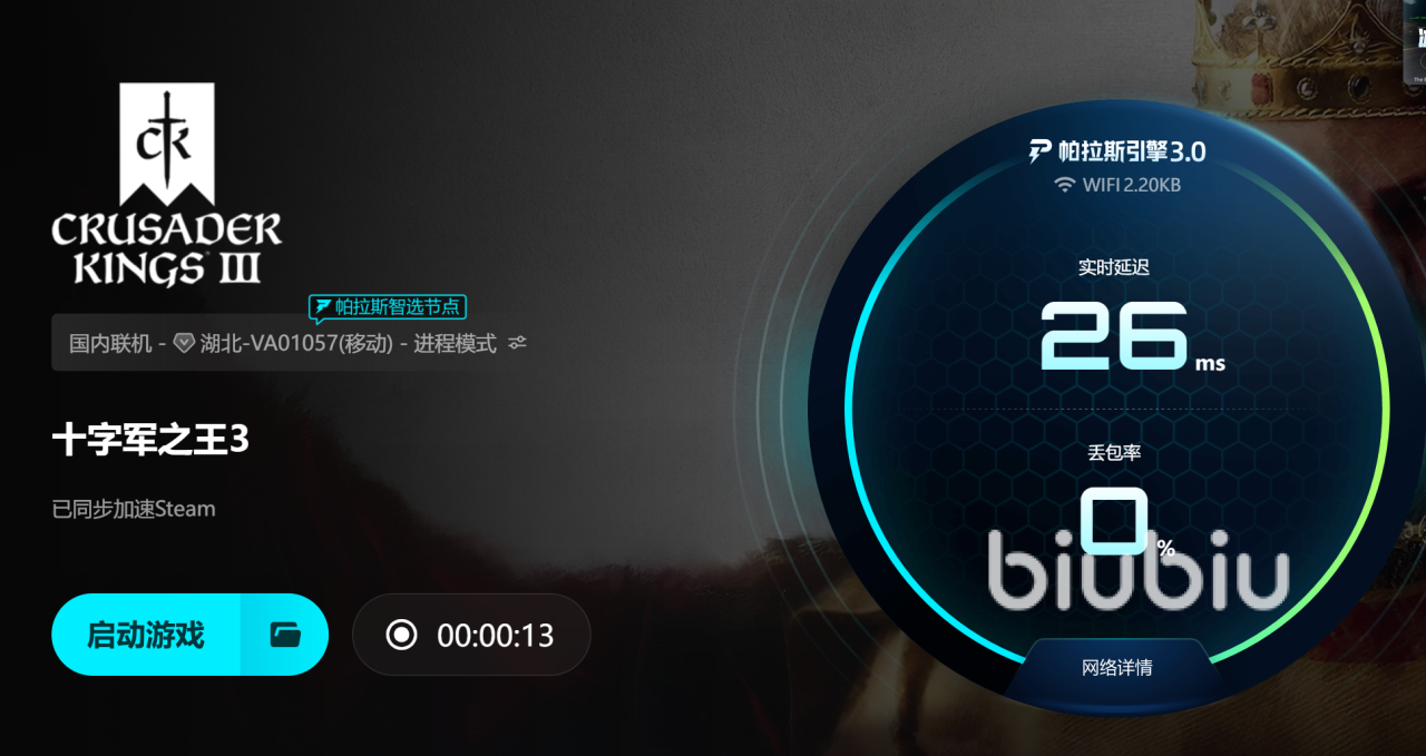 事实上,许多玩家在使用biubiu加速器后发现,不仅游戏可以更稳定地进入,运行过程中的加载速度和联机流畅度也有了提升。这并不是偶然,而是因为该加速器在技术层面不断进化,它与冠军选手Aixleft展开了深度合作,并引入了全新的帕拉斯引擎3.0。这一引擎能够更高效地处理跨区域传输数据,减少网络抖动和卡顿的发生,从而保证游戏运行的稳定性。对于像ck3这样需要频繁交互与长时间在线的策略游戏而言,这种优化显得尤为重要。无论是单机模式的加载,还是多人联机的互动,都能够在稳定的网络环境中得到充分保障。