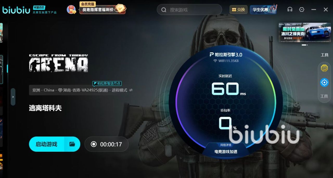 帕拉斯引擎3.0升级版更是如虎添翼,联合顶尖职业选手Aixleft进行深度调优,针对逃离塔科夫这类大规模复杂战斗地图的网络冲突与数据传输瓶颈进行了专项攻坚。其数据处理能力与实时调度效率得到全面跃升,能够轻松化解各种复杂网络环境带来的挑战。