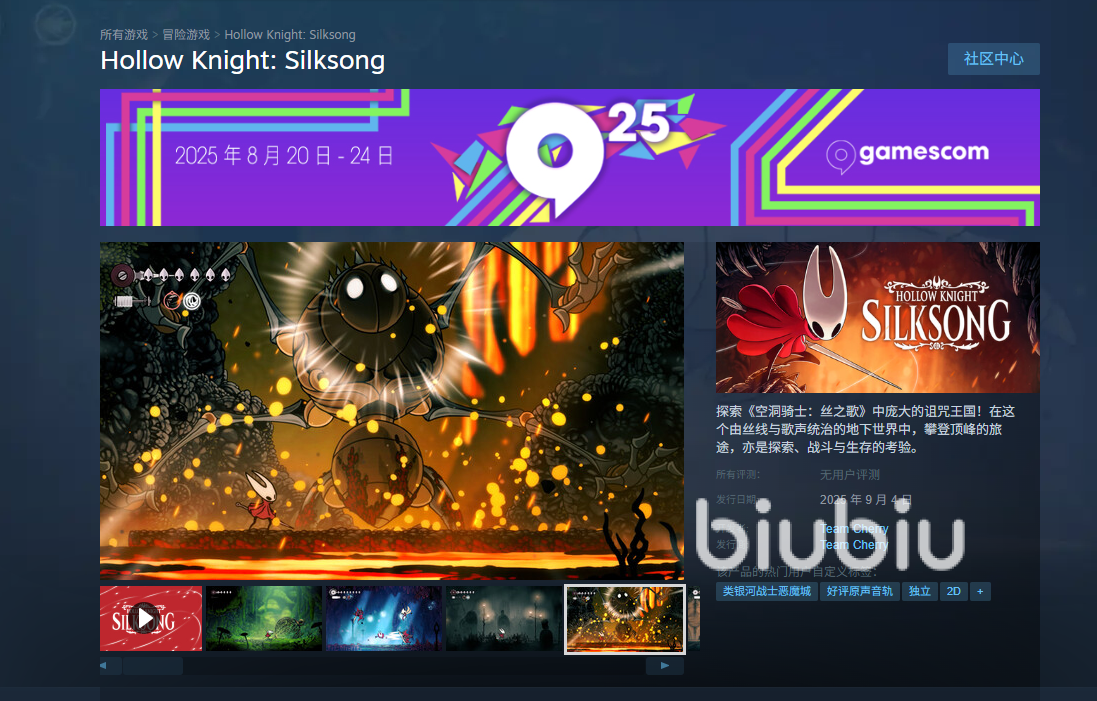 空洞骑士丝之歌英文名介绍给各位了,各位记得开头是H就行了,用中文名也能搜,跳出来的结果当中找到正确的之后,点进去页面都是中文版本的,能够看到游戏介绍,发售日期等等。当务之急是先在Steam加入心愿单,有发售价格出来之后预购,正式上线也能得到消息,完成下载开始玩,探索新故事。