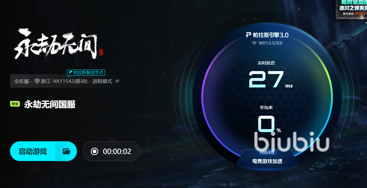 《永劫无间》的魅力在于武侠世界的沉浸感与连招博弈的爽快感。玩家可以踩着飞索穿梭于古建筑间,用太刀的 “振刀接升龙” 打出华丽连招,在三人小队中靠配合拆解对手攻势。每一次奥义释放、每一轮振刀博弈都扣人心弦,而闪退会让这些精心设计的体验碎成片段。尤其是在排位赛关键局,一次闪退可能让排名暴跌,这种挫败感足以让苦练许久的玩家失去斗志。这款biubiu加速器能从网络层面提供支持,减少这类意外的发生。