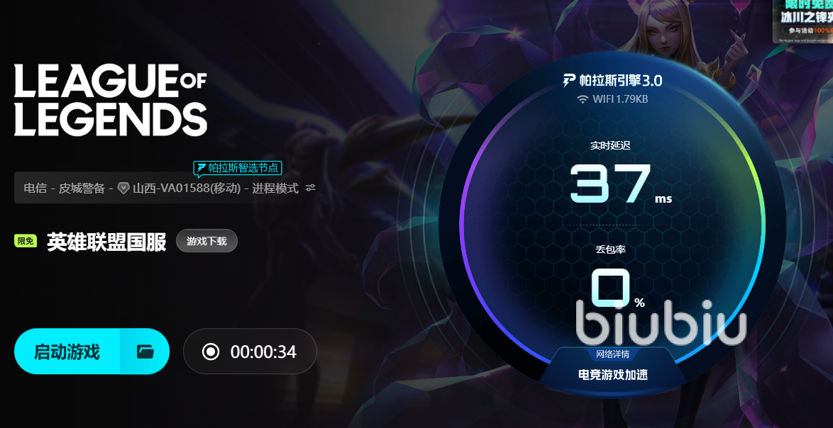 从底层优化角度看,biubiu加速器引入了帕拉斯引擎3.0,它能够更精准地识别不稳定节点,并根据玩家的实时网络状况进行动态优化。相比传统的加速模式,帕拉斯引擎3.0在延迟降低、丢包率控制以及整体稳定性方面都提升明显。尤其是英雄联盟这类对实时反应要求极高的游戏,哪怕一秒的延迟都会影响操作手感,因此这样底层优化的技术支持,显得尤为重要。玩家在体验中会发现,掉线的情况显著减少,重新连接的提示几乎消失,整体游戏的沉浸感和竞技体验都得到了极大改善。