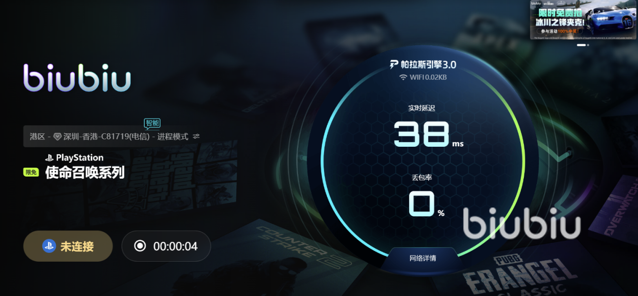 本地微弱的网络是无法给大家提供稳定流畅的环境,所以大家在启动游戏的时候最好是搭配专业的加速工具。在近期biubiu完成了重磅升级,为该游戏推出了专项加速方案。此次升级引入了全新的帕拉斯引擎3.0技术,具备智能链路探测与动态路由优化能力,能够实时分析全球节点状态,自动选择延迟最低、稳定性最高的传输路径,显著降低ping值与丢包率,有效缓解因网络抖动引发的卡顿与断连,让大家在高速移动、快速换弹和精准瞄准时操作更加顺滑。