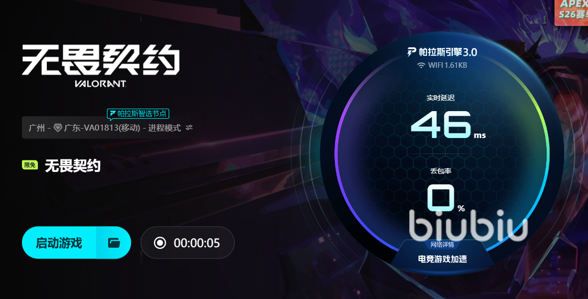 与冠军选手Aixleft合作,并引入帕拉斯引擎3.0,开启加速后可以选择最优传输线路,降低丢包率和跳点次数,保证游戏数据稳定传输。在无畏契约这种对网络要求极高的射击竞技游戏中,帕拉斯引擎3.0能够让玩家在高强度对抗中保持响应及时,避免卡顿和技能延迟,让对战体验更加顺畅。