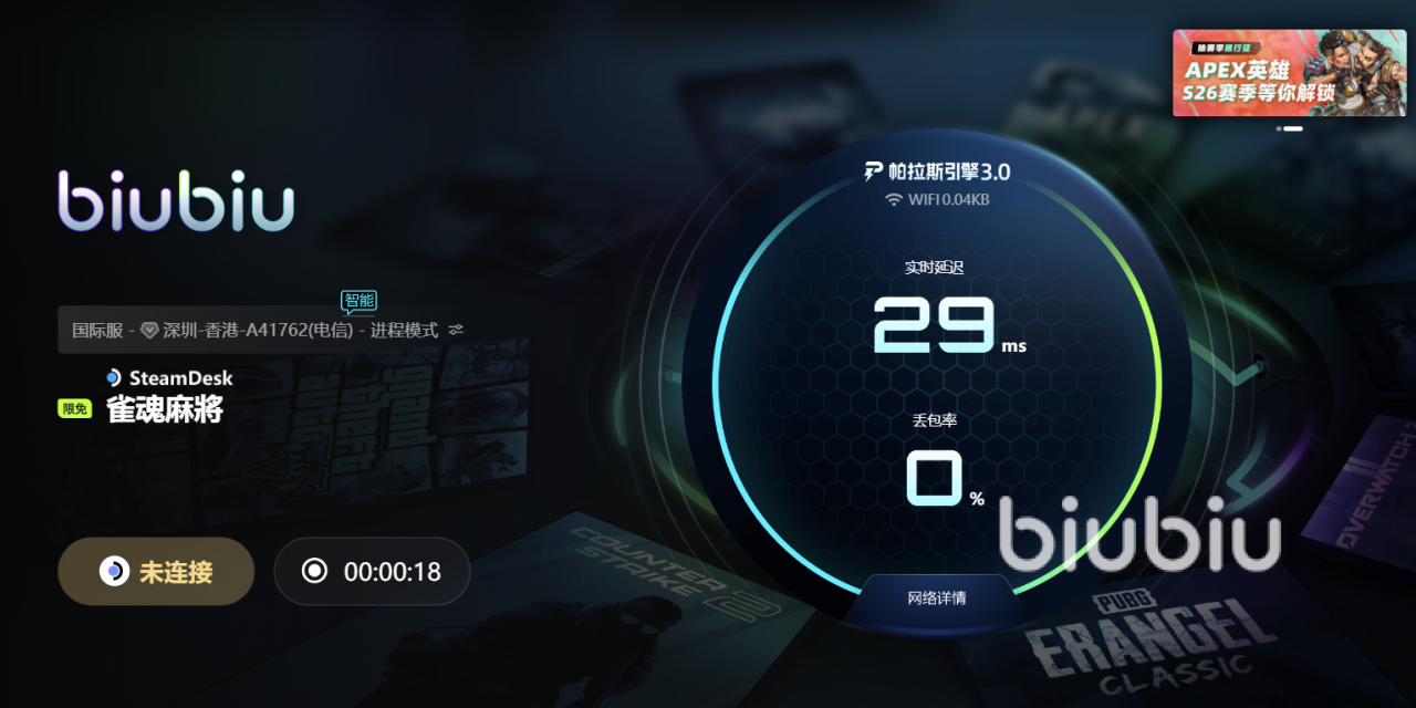 为有效解决跨区域连接带来的网络挑战,不妨来体验下这款近期完成重磅升级的加速工具,而该软件对于这类高实时性、低容错率的在线博弈游戏进行深度优化。专业技术团队携手知名电竞选手Aixleft也被邀请参与到升级调优的过程中,结合该选手在高压对局中的操作需求,精准调校数据传输策略,提升响应效率。此外新版本引入帕拉斯引擎3.0,在智能路径选择、数据压缩传输与抗抖动修复技术,尤为显著的降低了延迟和丢包,保证每一次对的打牌和摸牌都不再被干扰。