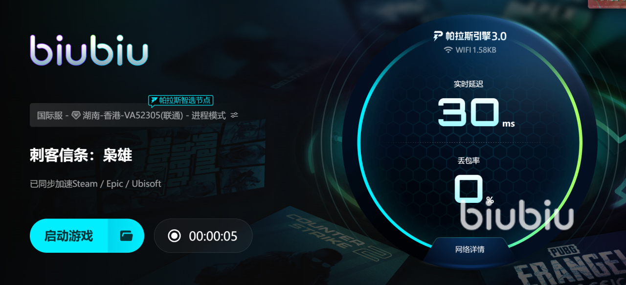 不过,即使游戏文件和硬件条件完好,网络环境不稳定依然会让《刺客信条》系列出现频繁的掉线或回桌面情况。毕竟这些作品在部分功能上仍需要与服务器进行通信,一旦网络延迟或丢包,就可能触发闪退。此时,使用biubiu加速器就是一个高效的解决思路。biubiu通过优化玩家与服务器之间的数据传输路径,大幅降低延迟并提升连接稳定性,从根源上减少了因网络问题导致的崩溃。尤其是它与冠军选手Aixleft合作,引入了帕拉斯引擎3.0,这一技术不仅强化了加速效果,还让数据传输更为智能化与稳定化,对于《刺客信条枭雄》和《黑旗》这种对连贯性要求较高的作品而言,能够带来显著的提升,让玩家告别频繁回桌面的困扰。