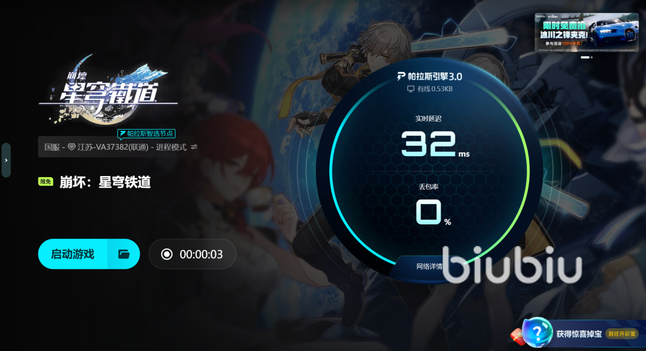 2025年08月26日 18:56 来源:司命右小海狮最近,不少玩家都在问崩坏星穹铁道进不去什么情况,有的人卡在加载页面久久不动,有的人听了许久的背景音乐却始终无法进入主界面,还有的在更新后反复重启也没能解决。这类情况不仅浪费时间,还让人错过活动和日常。与其一遍遍清缓存、重装客户端,不如直接开启biubiu加速器,从网络层面理顺连接,避免初始化异常,让游戏顺利启动。