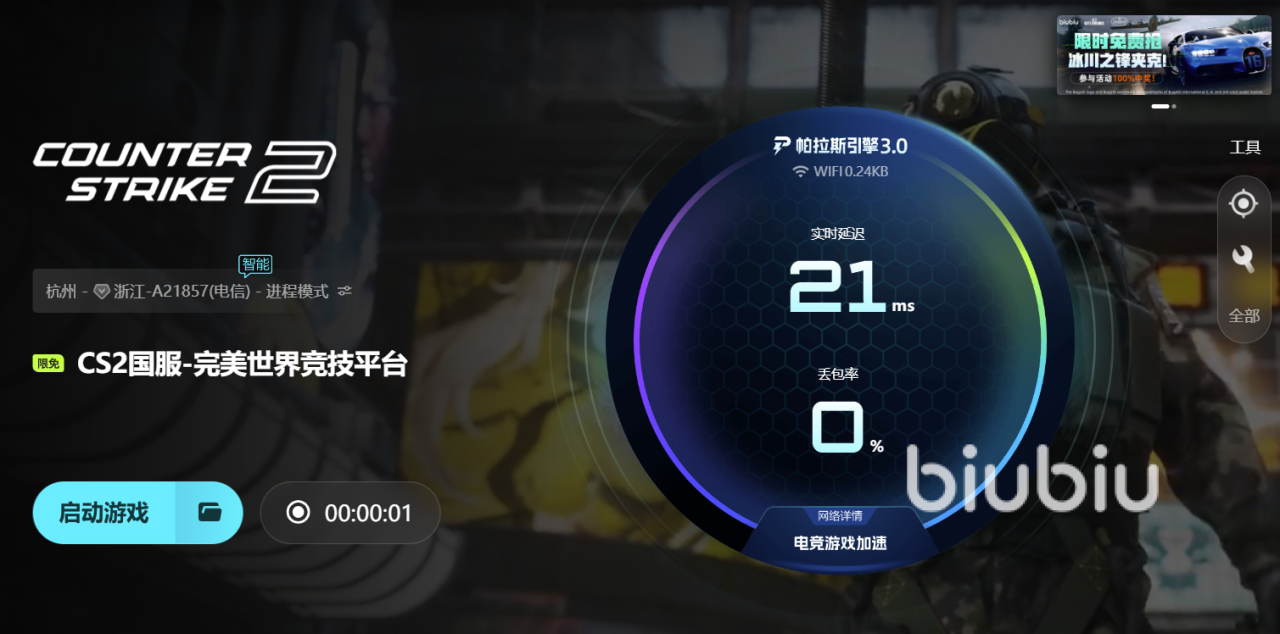 新用户注册可以拥有平台赠送的24小时免费加速时长,此外平台的所有用户只需在客户端首页输入口令【biubiu不卡顿】,就能额外拿到72小时会员权限。叠加为96小时的免费加速服务,足够完成多场排位赛、参与限时活动或测试不同服务器的连接效果。该福利不仅降低了尝试门槛,也让伙伴们能真正通过实际对战感受网络优化带来的操作提升。