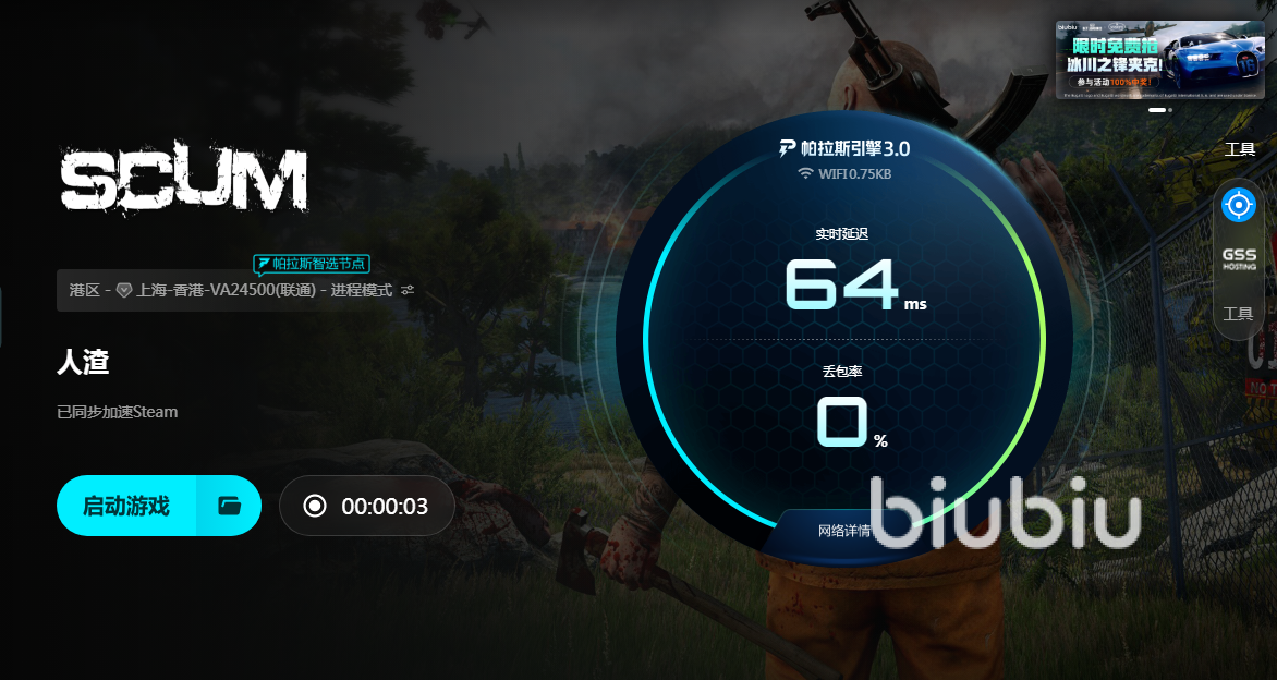 在人渣这款游戏中,玩家可以探索的游戏世界多达225平方公里,在这里可以自由探索,收集资源,建立生存据点和制造各种武器。另外游戏还支持沙盒模式、战役模式以及多人pve和pvp等,可谓给不同玩家都带来了真实的乐趣。再加上游戏的画质也属于拟真风格,无论是枪械还是其他各种配件,细节方面都制作的非常不错。再加上国内玩家登陆的国际服,需要较长的传输距离,加大了网络的压力所以,biubiu加速器是对这款游戏非常重要的软件。