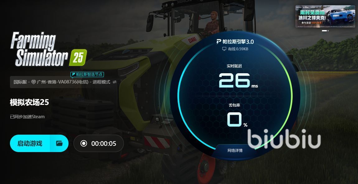 初次接触加速软件的新手,只需在搜索界面输入模拟农场25,点击一键加速即可完成连接。根据用户当前所在的地理位置,优先匹配最适合的加速节点和线路,实现毫秒级响应。丢包率控制为 零,ping保持在绿色的状态,延迟率也控制在相应的数值下让大家从此告别延迟和卡顿等系列问题