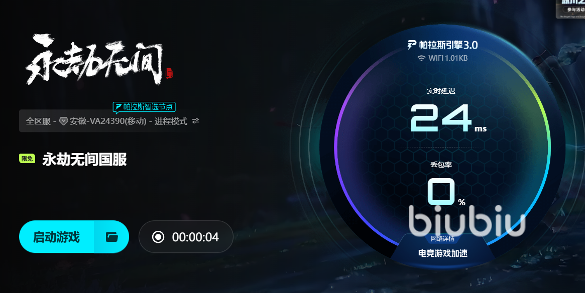 《永劫无间》的魅力在于武侠对决的行云流水与团队协作的默契无间。玩家可以用钩锁飞檐走壁,靠振刀化解攻势,在剑气纵横中展现操作,在三人小队中分工配合。有人正面牵制,有人绕后偷袭,有人远程支援。每一次闪避、每一次奥义释放都讲究时机,0.1秒的延迟都可能让胜负逆转。但高延迟会让这些精妙操作变成徒劳,蓄力攻击变成空挥,钩锁瞄准变成盲目飞行,再好的战术也难以施展。biubiu能从网络层面提供支持,让这些武侠对决更流畅。
