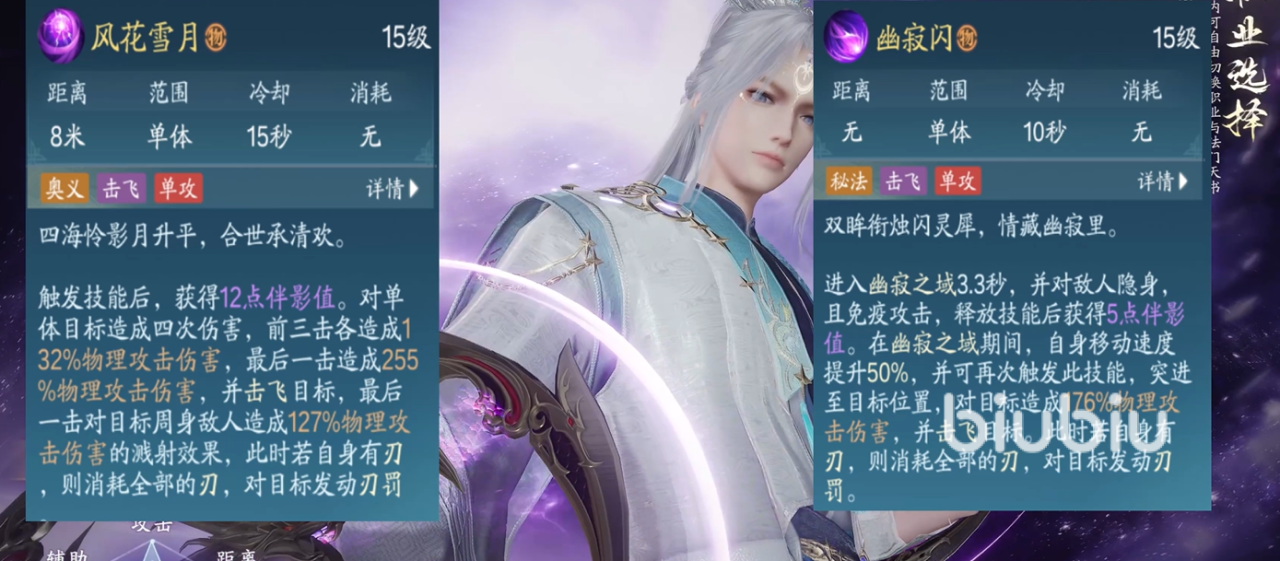 合欢是一种刺客职业,他的技能是月袭,用了后可以无限连招,每次攻击都能位移,让敌人难以预判。连续四次攻击后,下一次攻击会获得强化。还有百花缭乱,用了后能让角色隐身并在区域内穿梭攻击。终极技能是风花雪月,是一套高频率连招,最后一击附带击飞效果,根据"刃"层数还能触发额外效果。合欢的操作难度较高,非常考验玩家对入场时机和技能连招的把握,一旦失误容易陷入困境,但成功的刺杀带来的回报也是巨大的。