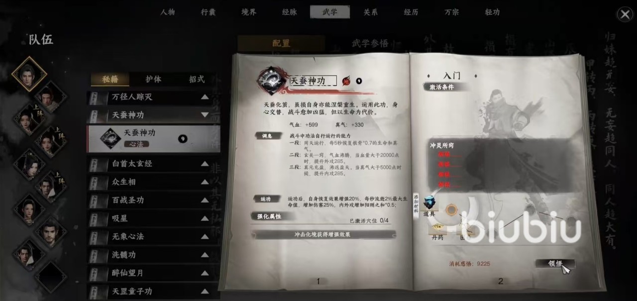 现在下一站江湖2这款手游已经正式和大家见面了,在移动端为了能够更流畅的运行下去,欣赏到精彩的战斗和游戏场景,biubiu加速器的优化作用非常明显。大家现在就可以点击下载,biubiu在移动端可做到免费加速手游。小编认为目前有一种比较出色的心法包括百战圣功、吞天纳地、心剑、天蚕神功等。首先是天蚕神功,天蚕神功的调息效果是一段能够每5秒钟按照跟骨*0.7的数值恢复生命和真气。二段当血量大于2万点时提升外功,三段效果是当真气大于5000点时提升内功。运功之后自身恢复效果增强20%,每秒钟消耗2%的最大生命值,提升25%伤害,内外功增加。
