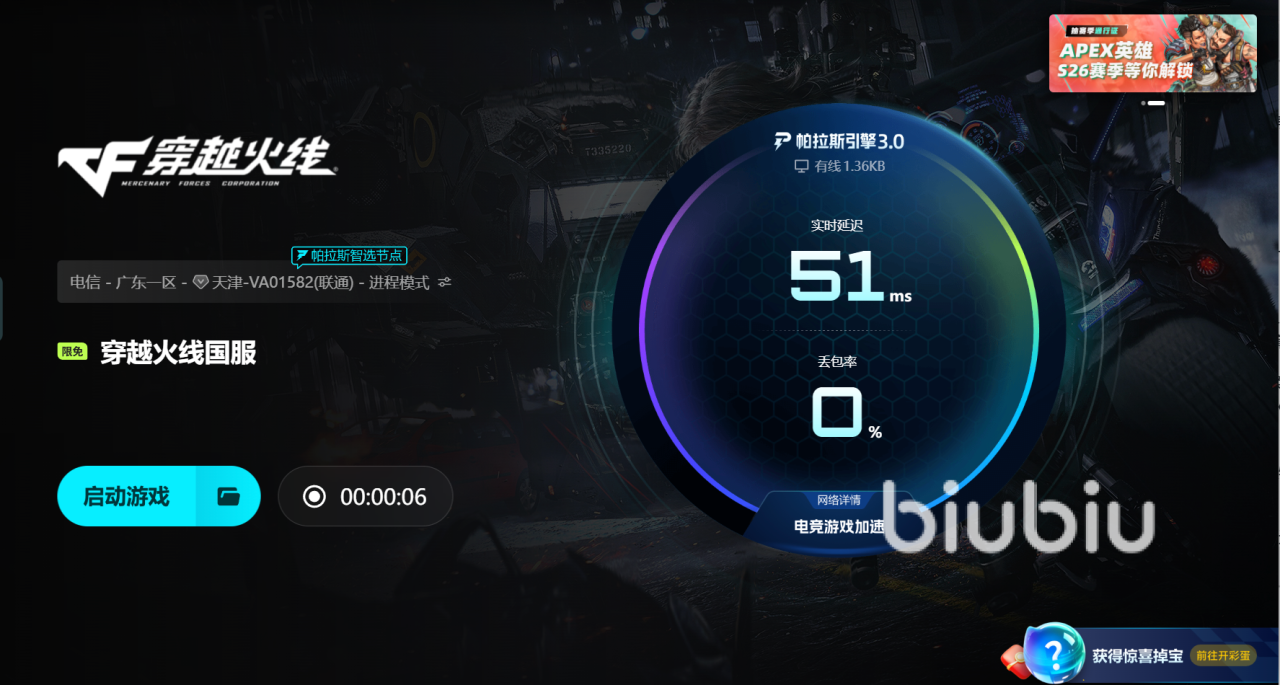 在功能升级上,biubiu加速器如今已搭载全新一代帕拉斯引擎3。这项技术会实时分析玩家的网络状况,动态选择最佳线路,并在检测到波动或拥堵时快速切换,避免因丢包和延迟飙升引发的掉帧问题。同时,FPS职业冠军选手Aixleft作为代言人也参与了调优。他将自己在职业赛场上对低延迟的苛刻要求转化为实际优化方案,使加速器在应对《穿越火线》这种节奏紧凑、对操作及时性要求极高的射击游戏时更具稳定性。