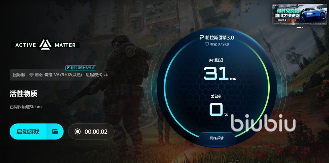 便捷的操作只需搜索游戏名称即可找到相应的服务器,一次给一款游戏加速,退出游戏停止加速即可,简洁操作界面,没有任何广告得干扰,支持多款主流游戏,兼容性强。加速成功后,用户还可实时查看延迟、丢包率等网络数据,随时掌握连接状态,真正做到透明、安心、高效。