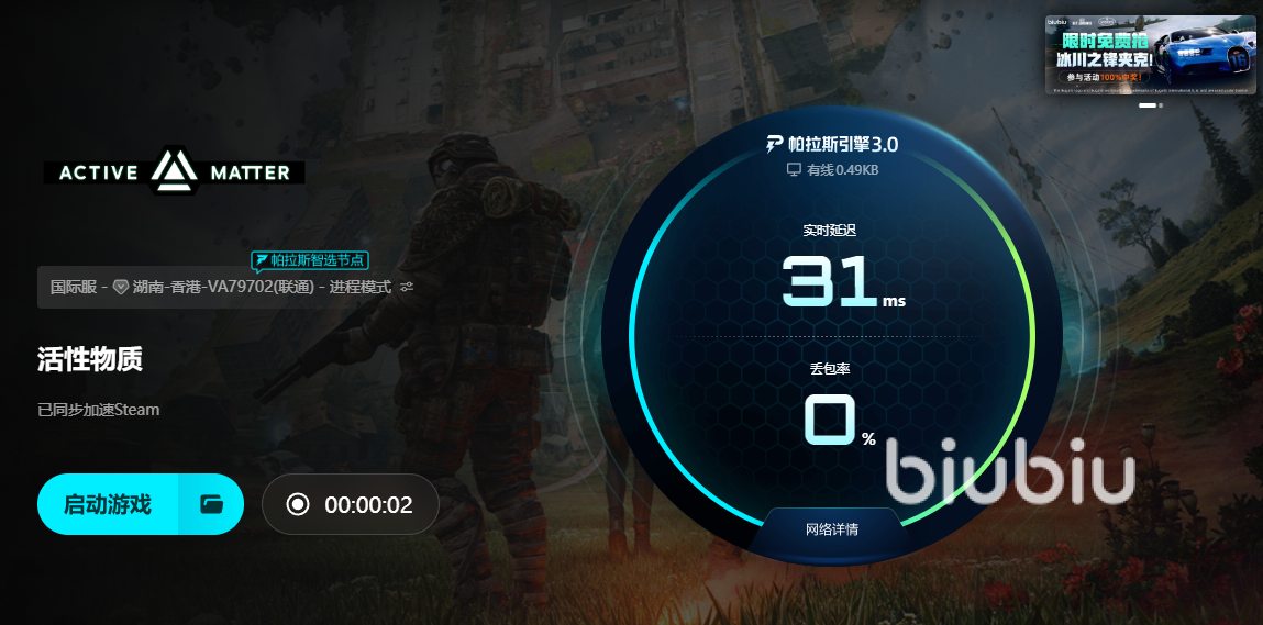 以上就是小编整理的活性物质黑屏闪退卡顿延迟丢包怎么办所有内容,大家所数值的卡顿、延迟、掉帧等常见问题,除了小部分由硬件和游戏自身文件缺失造成的之外,大多数常见问题都和网络有深厚的关系,不过通过biubiu加速器,不仅可以解决这些问题,还能通过biubiu预防这一系列问题。