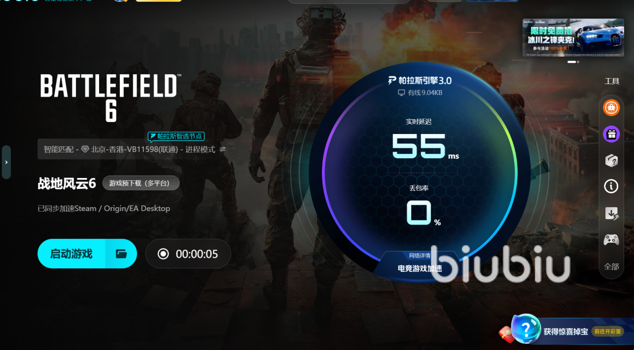 为了解决玩家的困扰,biubiu加速器特别为大家准备了福利。新用户注册即可领取24小时免费加速时长;而所有用户在客户端首页【兑换】界面输入口令【biubiu不卡顿】还能额外再获得72小时加速体验。这些福利不仅能直接应用于《战地6》,也能覆盖其他FPS、MOBA、MMO类游戏。:用户不必支付额外费用,即可立刻体验到加速优化后的流畅表现。