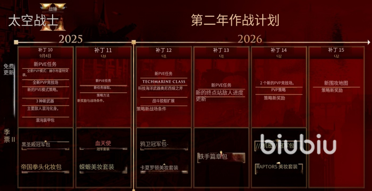 根据预告视频得知,第二年的内容是延续第一年的模式的,在2025年到2026年期间推出6个更新补丁,带来更多的免费玩法更新,新内容如下。
