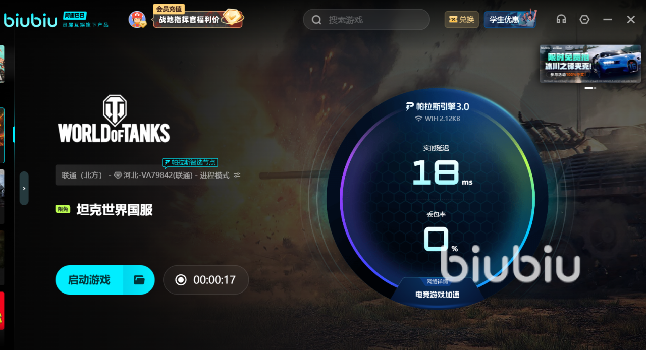 为不断提升战斗体验,biubiu目前携手重量级冠军选手Aixleft共同完成了加速技术的重磅升级,全新引入的帕拉斯引擎3.0版,正是为应对大型在线对战环境量身定制的智能加速平台,专为扫除影响竞技状态的各类网络顽疾而生。