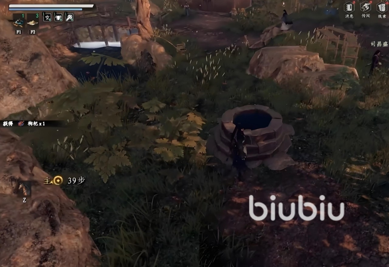 任务始于云鹤村的NPC狗子。与他对话后,他会提到水井中有神秘发光物。此时需走到井边互动,选择“打捞”动作,反复尝试直到捞出一块“琉璃石”。将琉璃石交还给狗子后,他会感谢你并消失。随后重返井边,此时会听到钟声,再次互动井口会发现井底出现石头和尸体。将它们全部捞起后,正式开启井底探索——直接跳入井中,进入密室场景。落地后先别急于前进。密室左侧有一个宝箱,记得拾取其中物资;接着转向左侧区域,在书桌上发现关键提示“开叙先角后羽,再响徵二声,引商官”。这句话明确指出了编钟的敲击顺序,务必牢记。