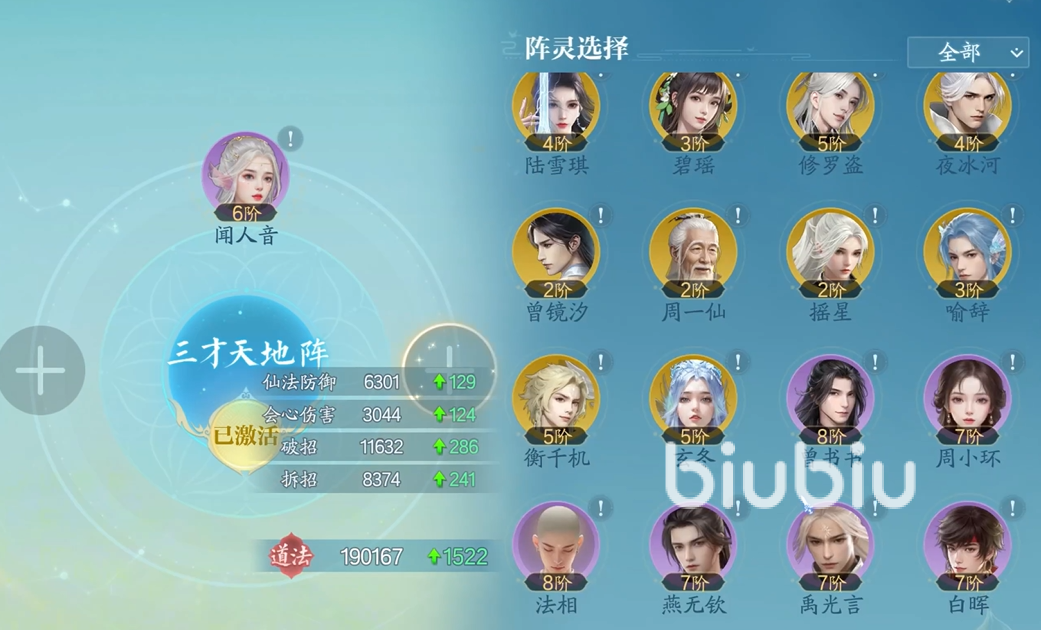 不过就算你的阵法再强,如果太卡的话也无法发挥出应有的实力。用上biubiu后,即可流畅攻击,最大限度发挥实力。况且手游免费加速,使用过程无负担!这里推荐大家用极限输出流,核心阵灵是万剑一(道玄真人)、苍松道人、张小凡、陆雪琪、林惊羽、鬼厉,适合追求高爆发、操作较好、喜欢全力输出的玩家使用。