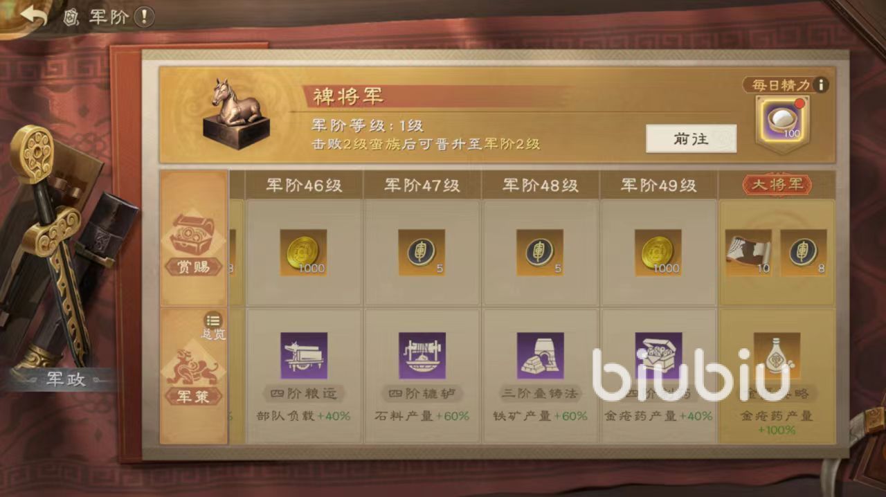 在这款游戏中,军阶是重中之重,所以第一时间就要将军阶提升到最高,另外每日精力也关系到军街。这里小编的建议是第一时间不要领取,等到军阶提升之后再去领取,可以获得更多的奖励。军阶还关联军政系统,能尽快解锁高级兵种,提升资源产量,所以要尽可能的快速提升。解锁探索系统之后,每天需要清理相关探索任务,获得所有奖励。同时探索也要尽快升级,只要解锁了寻访系统就能获得更多的武将了,至于其他诸侯演武系统等活动,都要及时参与。