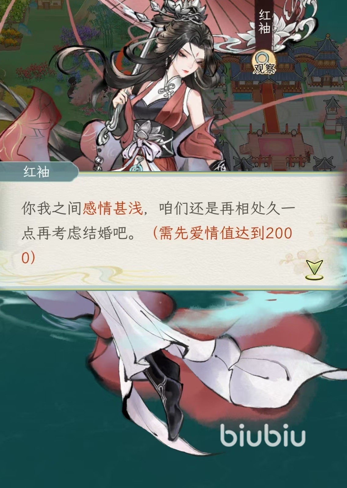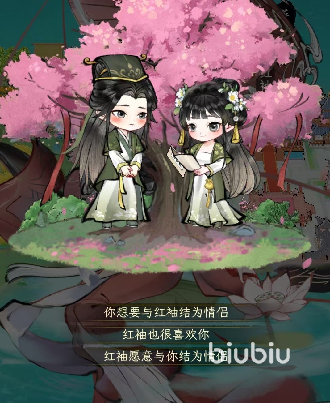 只有当好感度积累到一定等级之后,才可以解锁表白选项,成功表白之后,双方就会进入到情侣状态了。但是玩家在江湖历程中只能拥有一位配偶,一旦确认婚姻关系,其他恋爱线将会自动冻结,无法再和其他角色推进到婚姻阶段。游戏中的爱侣系统也是非常真实的,双方的情侣关系需要持续维护,如果长时间没有进行互动,或者是在一些关键选项中做出令对方反感的决策,会导致双方关系倒退,可能会退到冷淡甚至直接分手。结婚成功之后则会解锁专属于夫妻的互动和剧情,这也是很多玩家在游戏中都想找一位伴侣的原因所在。