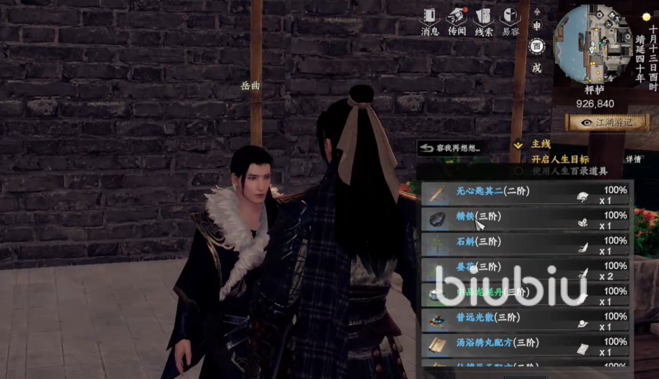 随后可以前往枰栌(坐标927,840),击败NPC岳曲获取第二把钥匙,玩家可选择正面交战或采用巧妙截取的方式。紧接着来到云鹤村(坐标1066,1459),在NPC徐之易身上找到第三把钥匙,同样可通过战斗或巧取截杀方式取得。