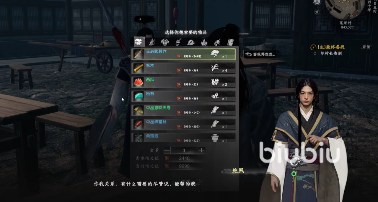 接下来,前往长旌军墓地(坐标644,1121),祭拜十次后才能进入墓地内部,与书柜互动即可获得第四把钥匙。第五把钥匙则隐藏在无心地宫深处的书架旁,只需走近即可拾取。最后,玩家可以前往蓬莱村(坐标843,527),从NPC绝夙处拿到最后一把钥匙。