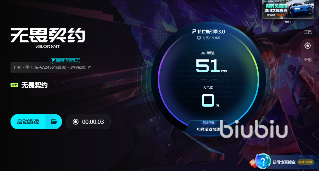 为帮助玩家快速解决这一困扰,biubiu加速器推出了福利活动,新注册用户可立即领取24小时免费加速时长,所有用户只需在客户端首页【兑换】入口输入口令【biubiu不卡顿】,还能再额外领取 72小时免费加速。这些福利不仅适用于《打瓦》,也能应用于FPS、MOBA、MMO等多种热门游戏,让你无需额外花费就能体验稳定流畅的网络环境,是多么好的一件事情。