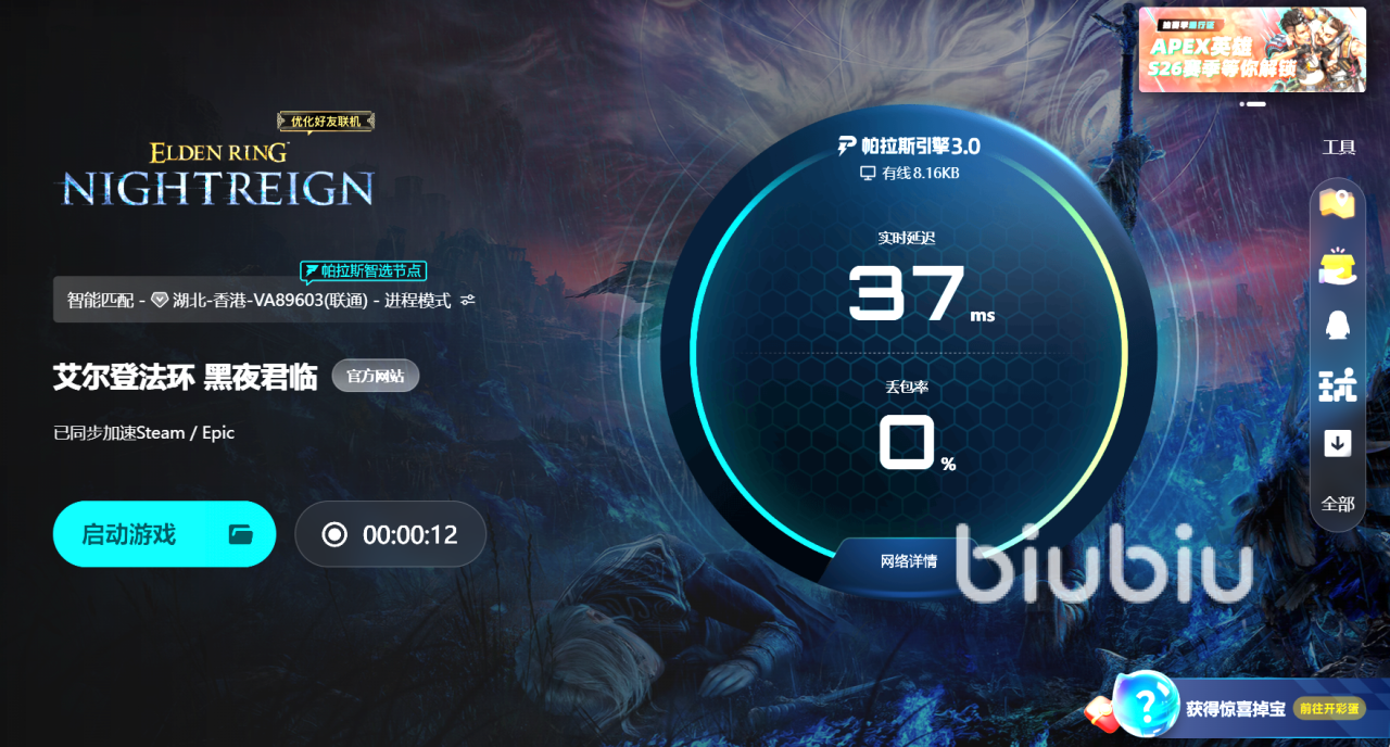 如果你也正在为艾尔登法环黑夜君临闪退而困扰,可以在战斗前就先行开启biubiu加速器。它能让网络保持稳定,降低闪退概率,使你能专注在攻防节奏与操作细节上。在这种高难度的挑战中,稳定顺畅的环境才能让玩家充分发挥实力,享受战斗胜利带来的成就感与激情。
