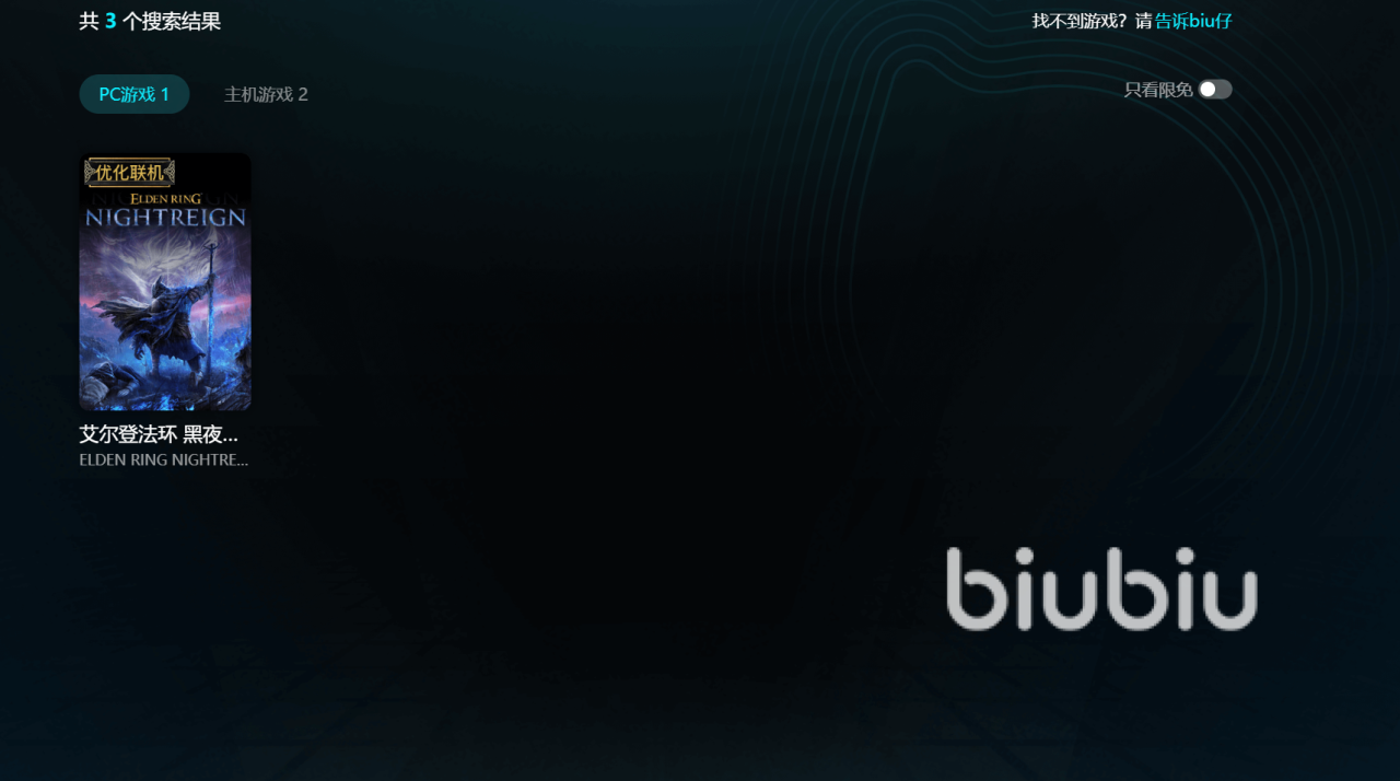 在使用上,biubiu加速器保持了简洁的操作体验。玩家只需打开客户端,在搜索栏输入“艾尔登法环”,选择加速专区并点击开启,系统会自动完成优化,无需复杂设置。软件后台占用极小,不会影响电脑性能,并且同时支持Steam、Epic等多个游戏平台。不仅能帮助解决《艾尔登法环 黑夜君临》的异常退出,还能优化FPS、MOBA、MMO等多类型游戏。