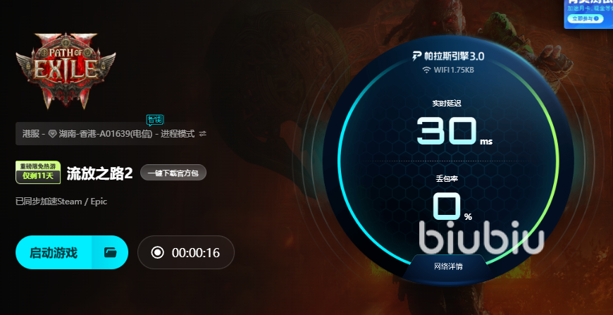 面对流放之路2等大型网游复杂的网络环境,biubiu搭载的帕拉斯引擎迎来重磅升级,帕拉斯引擎3.0以及更新完成,并与顶尖选手Aixleft携手联合调优,给玩家更专业的服务。该引擎拥有强大的实时数据处理能力,可精准规避各类网络冲突和传输瓶颈,大幅降低延迟与丢包率,帮助大家享受始终顺滑的稳定游戏体验。
