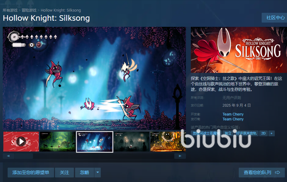 2025年8月21日开发商Team Cherry就已经正式宣布这部作品将于2025年9月4日在全平台同步发售,本作将支持简体中文界面、字幕以及语音,现已正式上架Steam平台,有需要的小伙伴可以前往商店页面添加愿望单,以便及时获取发售信息和更新动态。