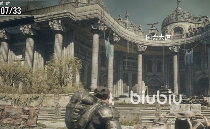 5、同个关卡,来到建筑物中心,面前的石柱后面,靠左边的位置就藏着一个。