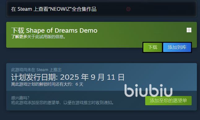 不过该作品暂未上线,发行日期是9月11日,已经不足一星期,不过若大家担心到期没有及时体验的话,可以选择通过steam将该作品添加至自己的愿望单当中,这样游戏推出时也能收到通知。