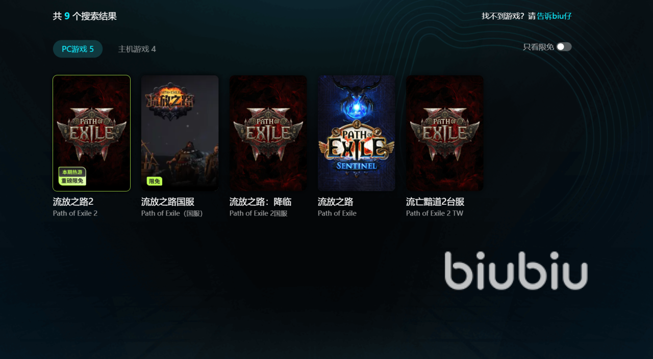 biubiu加速器依旧保持简洁直观的设计。玩家打开客户端,在搜索栏输入“Steam通用加速”并点击开启即可完成优化,适配《流放之路》的运行需求,都不需要复杂的设置。后台也不需要占用多少,不会让电脑的性能拖慢,同步兼容在Steam、Epic、Battle.net等太多个游戏平台下正常使用。,不仅可以支持《流放之路》,也能为其他大型游戏提供稳定加速。