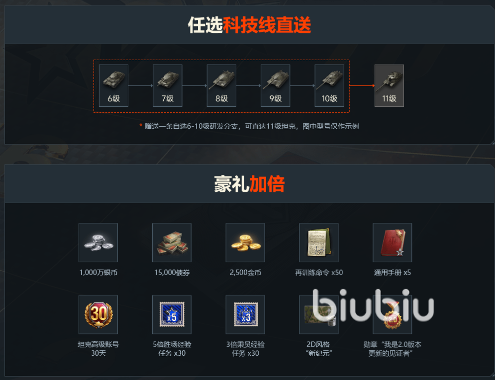 3、最后还有所有玩家可获取的额外奖励:5本通用手册、60天高级账号、5倍胜场经验任务60个 & 3倍乘员经验任务。