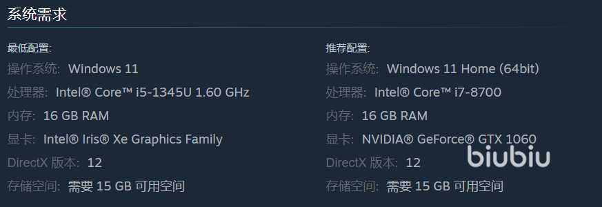 若想开启这场征途,需要装备Windows 11操作系统,处理器Intel® Core™ i5-1345U,基准频率 1.60 GHz是最低保障。内存16GB,存储空间则需预留15GB。显卡要求,Intel® Iris® Xe Graphics Family 即能满足基础画面输出需求。