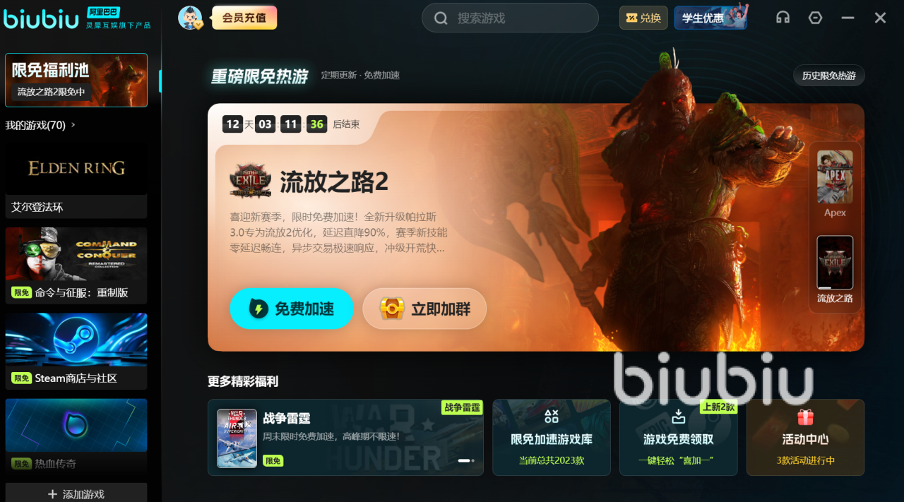 为帮助玩家体验到更流畅的联机效果,biubiu加速器特别推出福利活动。新注册用户立即获赠24小时免费加速体验,零门槛上手;同时,所有人只需在客户端首页【兑换】界面输入【biubiu不卡顿】,再送你三天(72小时)的免费加速体验。这些时长不仅能应用于《英雄联盟》《绝地求生》《无畏契约》等热门网游,也同样支持MMO和FPS大作。通过福利体验,稳定的网络让你立即感受到流畅体验,关键战斗中也能避免因延迟而陷入被动。