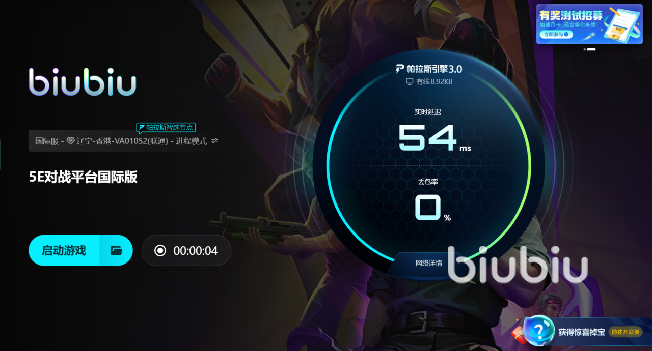为帮助玩家解决困扰,biubiu加速器准备了福利活动。新用户注册后即可领取24小时免费加速时长,所有用户在客户端首页【兑换】页面输入口令【biubiu不卡顿】,另外可享受72小时的免费加速服务,这些福利覆盖的不只是5E平台,也支持FPS、MOBA、MMO等多类热门网络游戏,帮助用户在多种游戏环境中保持连接流畅不卡顿。