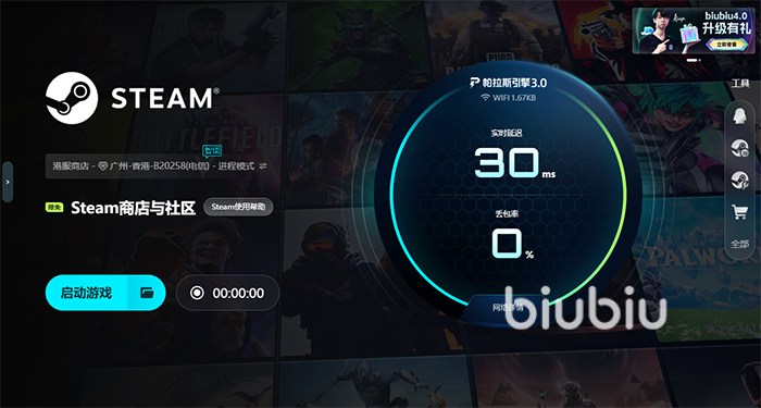 从技术角度分析,游戏发生卡顿和延迟问题的实质,是游戏数据在客户端和服务器之间传递时,遇到了特殊情况,造成数据传不全或传不出去,在游戏里所表现大家的就是画面卡顿,动作延迟或者闪退,所以从底层技术逻辑解决数据传输的问题,就可以了。在此,小编推荐大家可以尝试一下刚完成升级的biubiu加速器。