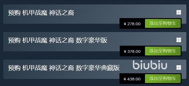 游戏从8月开始开放的试玩版是免费的,试玩版拥有部分机体与地图,玩家可提前熟悉操作与战斗节奏。正式版包含更多装备、装甲武器槽深层自定义,及多人协作PVE模式。此外,现下也同步推出了游戏相关DLC,音效、装备、机甲组合包分别是20元、24元、28元,人物造型动作免费,每项DLC能自主选择是否添加到游戏。玩家可进入游戏尝试后,选择合适的版本搭配购买并体验!