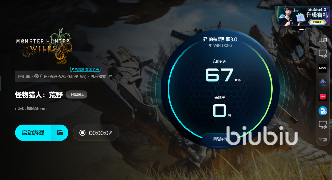 面对怪物猎人荒野这类对网络要求极高的大作,biubiu始终致力于技术升级与体验优化。近日更携手超人气选手Aixleft联合研发并推出全新“帕拉斯引擎3.0”,旨在为玩家提供更稳定、更高效的加速服务,全面保障联机流畅与操作响应,只要服务得当,后续大家再体验其他作品的时候也可以照常使用这个提速平台,轻松给自己提供一个稳定流畅的操作环境,无论是玩国服还是国际服,竞技类游戏还是休闲类,都可以使用这个提速工具。