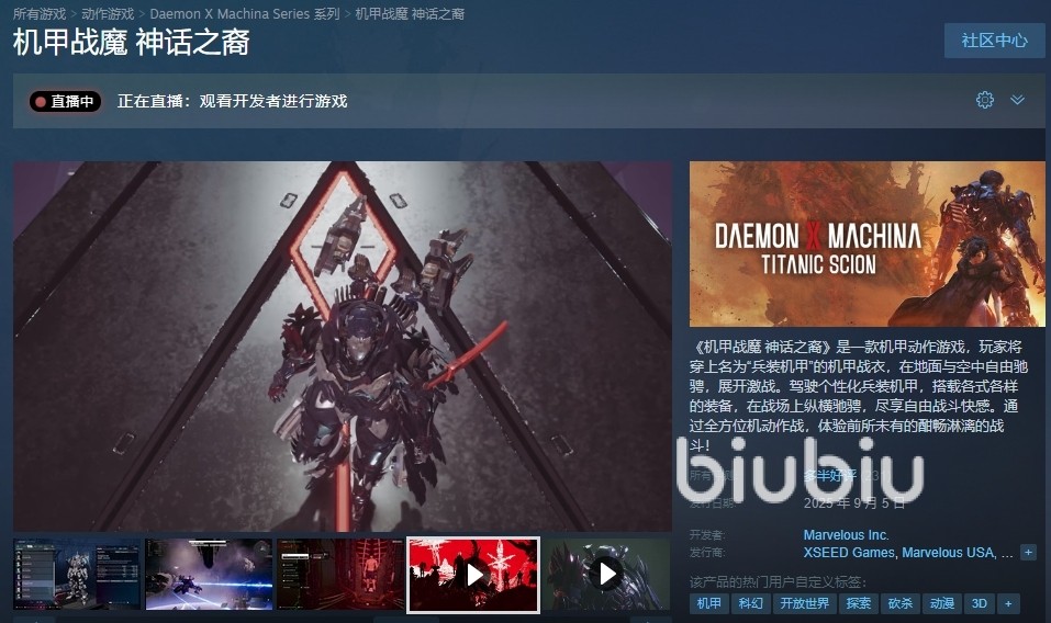 Steam平台,机甲战魔神话之裔英文名定为“Daemon X Machina:Titanic Scion”,可以直接在搜索框中输入英文名或中文名就会显示预览,点击后进入专属页面。国区支持简中界面,玩家加入愿望单追踪动态即可获取通知,游戏已在9月5日Steam发售,感兴趣的朋友现在就可以体验了。